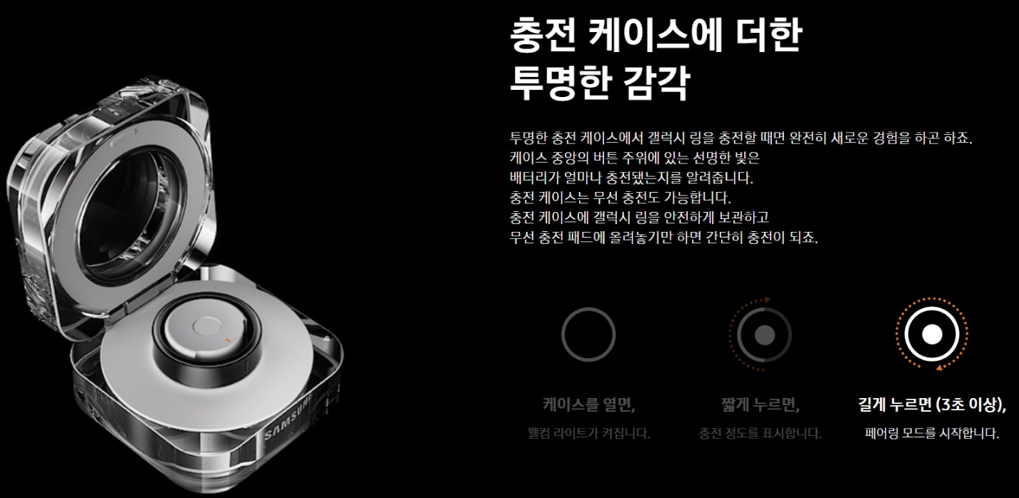 갤럭시 링의 경우 충전기가 휴대하기 편리하고 무선충전이