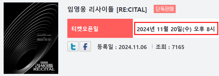 - 예매일정 : 2024년 11월 20일 오후 8시