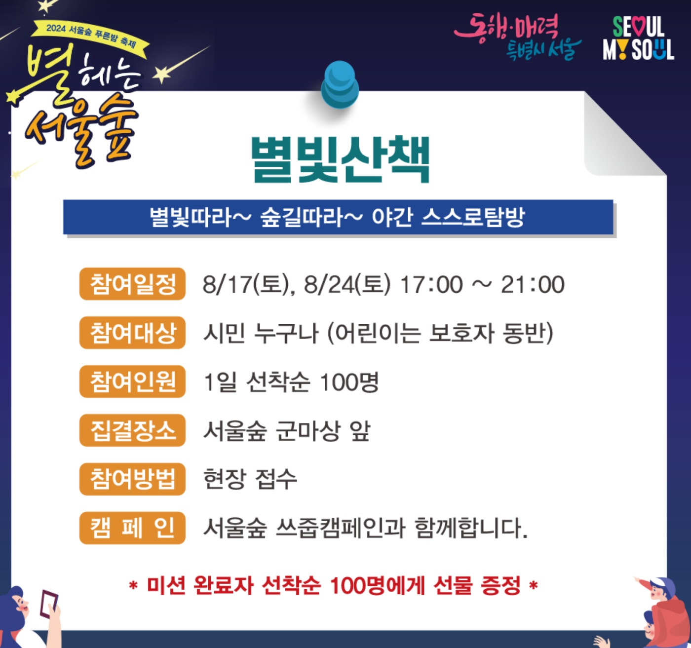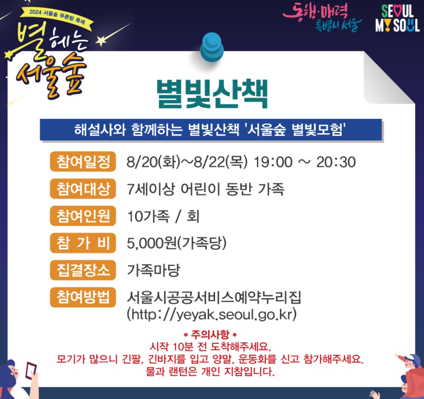 - 내용 : 숲 해설가와 함께하는 서울숲 밤 산택 및