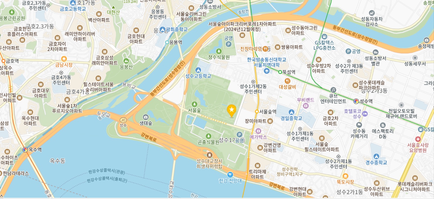 서울숲 주소 : 서울시 성동구 뚝섬로 273, 성수동 1가 678-1