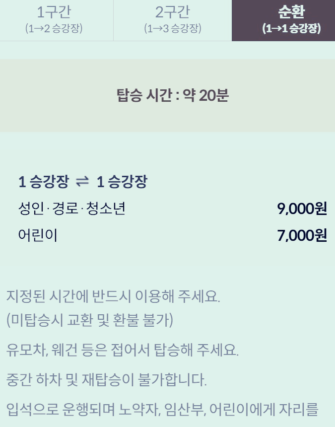2구간은 성인 7,000원 어린이 6,000원입니다.